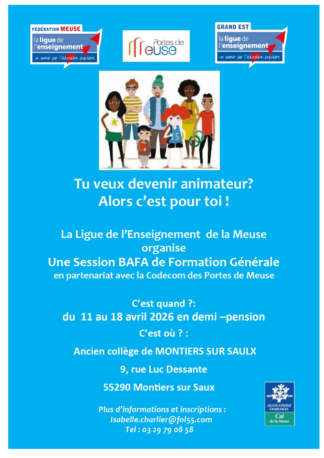 La Communauté de Communes des Portes de Meuse, en collaboration avec La Ligue de l’Enseignement Grand Est et Meuse, propose à nouveau en 2026 une session de formation pour obtenir le BAFA (Brevet d’Aptitude aux Fonctions d’Animateur) et